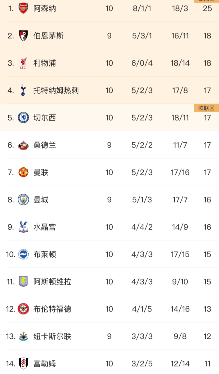目前,英超积分榜陷入大乱战,第2名伯恩茅斯距离第11位的维拉只有3分的差距,一场比赛胜负就会让球队排名发生巨变。而表现稳健的阿森纳,无疑是英超乱战的最大赢家。